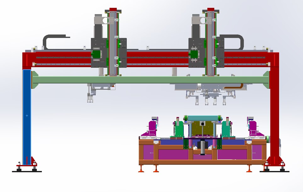 本生產(chǎn)線依據(jù)用戶需求,進行“量身”設計,由層壓前鋪設傳輸線;通過不同機構(gòu)的傳輸、轉(zhuǎn)運、變向、定位、旋轉(zhuǎn)/釋放實現(xiàn)組件封裝過程的流水化操作,可提高單位組件生產(chǎn)效率。